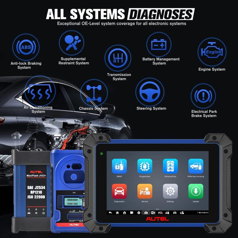Autel IM608 PRO II is the most advanced key programming tool, which combines IMMO and programming functions with OE-level diagnostics and advanced service functions in one tablet, Upgrade version of MaxiIM IM608 Pro. It comew with 10.1-inch Android touchscreen tablet, XP400Pro key and chip programmer, the wireless JVCI+ J2534 pass thru programming device and in this package, it includes the Key Programming Adapter IMKPA kit, APB112, G-BOX3.