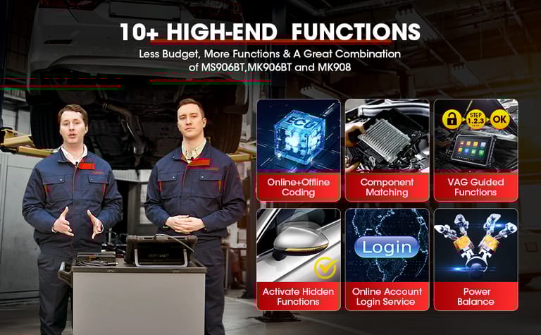 Upgraded from Maxisys MS906BT/MS906 Pro/MS908/MaxiCOM MK906BT/MK908/MP808, this new launched obd ii autel scanner has been added with 10+ high-end functions to simplify the complicated repairs and speed up the repair processing.