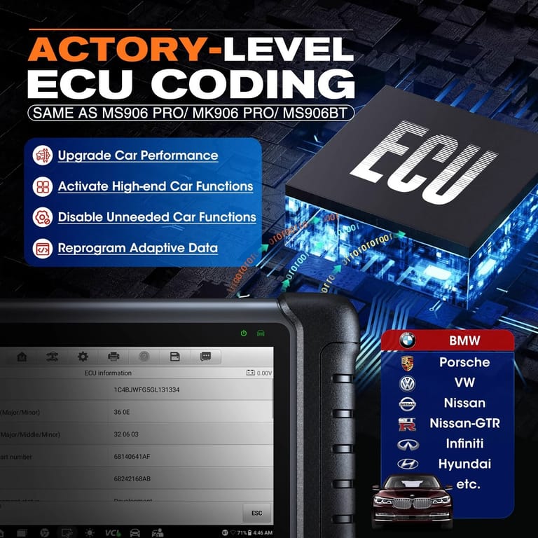 You can use ECU coding to enhance vehicle fuel efficiency, recode replacement modules in ECU, access online OEM server to modify parameter to achieve the purpose of customizing modify car Settings (not choose code but input you want value.)
