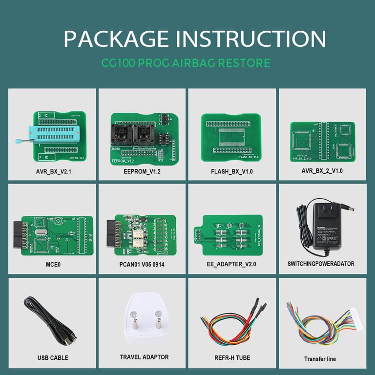 CG100 PROG III functions includes airbag repairing, instrument calibration, car body computer repairing, car amplifier computer repair etc, and supports operatea RENESAS, Infineon, ST,MOTOROLA, ATMEGA, NEC, AM28BL802CB and other different chips. Full-featured version of CG-100 with adapter supports writing LandRover key and BMW Key. Support BMW, Volkswagen, Bentley engine computer repairing and replacement, and even provide support for domestic MT80, MT60 engine computer repairing and replacement.