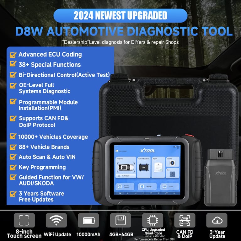 XTOOL D8W ECUCoding scan tool can perform online coding, components matching, adaptive data reset and flash hidden functions, to enhance vehicle performance and personalize car settings after replacing the ECU.